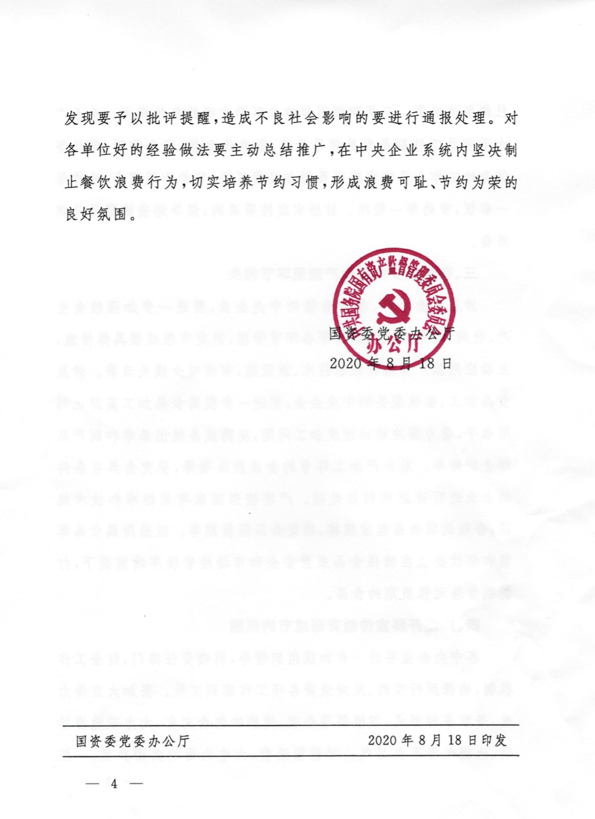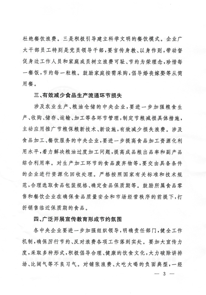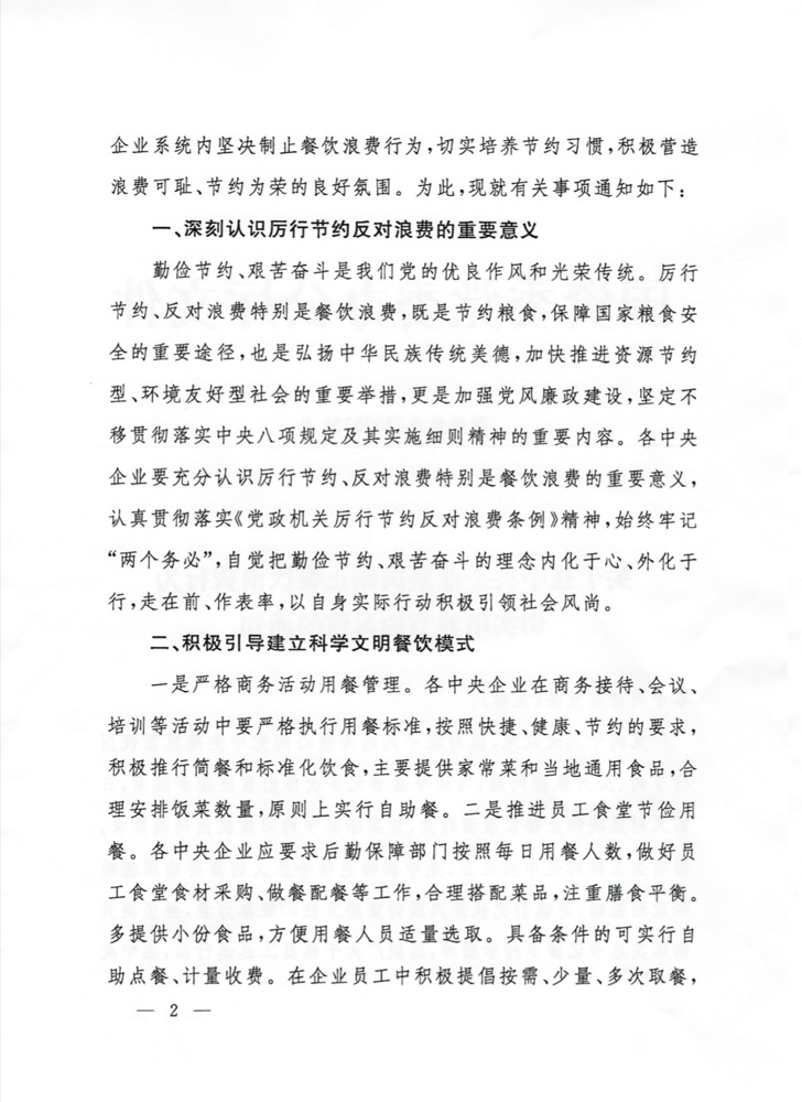 关于在中央企业坚决制止餐饮浪费行为切实培养节约习惯的通知