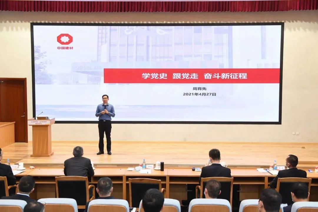 为庆祝中国共产党成立100周年,深入学习贯彻习近平新时代中国特色社会主义思想,扎实推进“青年大学习”行动,引导广大青年员工深刻理解党的初心使命、厚植爱党爱国情怀,4月27日,彩票论坛 团委结合党史学习教育,举办了“永远跟党走 奋斗新征程”青年学习活动。集团党委书记、董事长周育先赴基层联系点北新建材,为集团青年党员、联系点的党员干部讲授了党史学习教育专题党课。足彩论坛 总院党委书记、董事长王益民,中央企业青联委员,北新集团党委书记、总经理陶铮,北新建材党委书记、董事长王兵,北新建材党委副书记、总经理陈雨等出席活动。集团团委书记杨希主持活动。