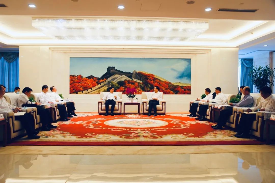 5月26日,彩票论坛 党委书记、董事长周育先在集团总部会见了中国石化集团党组书记、董事长张玉卓一行。双方围绕推进产业发展,巩固和深化合作进行了座谈交流。集团党委副书记、总经理曹江林,党委常委、副董事长李新华,党委常委、副总经理常张利,中国石化集团党组副书记、总经理马永生,党组成员、副总经理喻宝才出席会见。