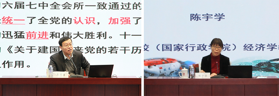 李志勇教授从《决议》的时代背景、坚持唯物史观和正确党史观、《决议》的核心内容等三大方面,作了《党的百年奋斗重大成就和历史经验——党的十九届六中全会精神解读》专题辅导。陈宇学教授围绕坚持创新驱动发展的时代背景,正确理解创新型国家和创新驱动发展,完善创新生态系统、推动创新驱动发展等三个方面,作了《创新驱动与创新驱动发展战略》的专题辅导。