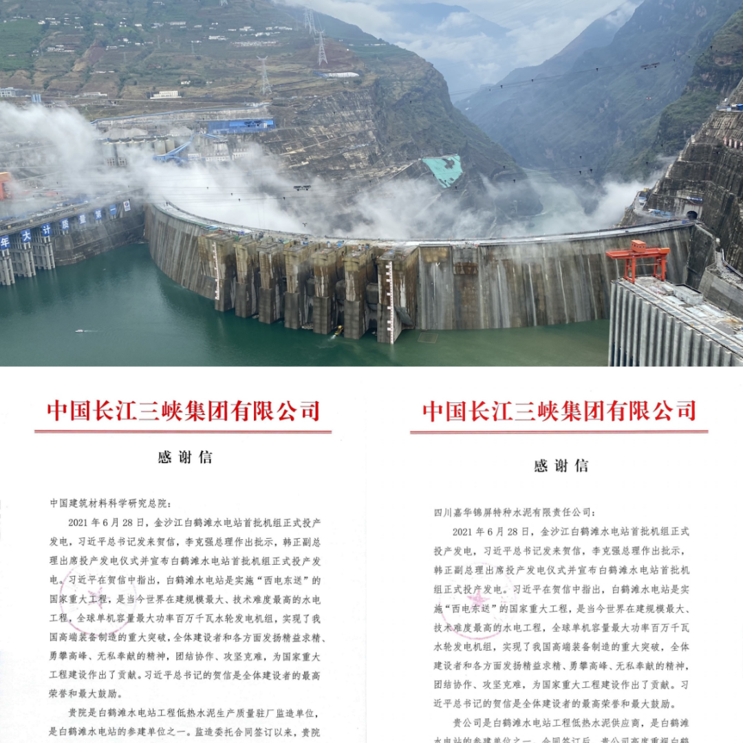 7月,低热水泥助力大国重器白鹤滩水电站正式投产发电。低热水泥是彩票论坛 的重大科技成果,2006年获得国家发明二等奖。足彩论坛 总院是⽩鹤滩⽔电站低热⽔泥⽣产质量驻⼚监造单位,嘉华水泥是白鹤滩水电站低热水泥供应商,都是白鹤滩水电站工程的参建单位,助⼒⽩鹤滩⽔电站⾼质量完成⼯程建设。