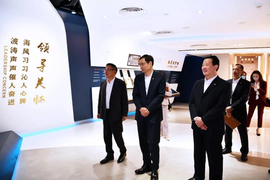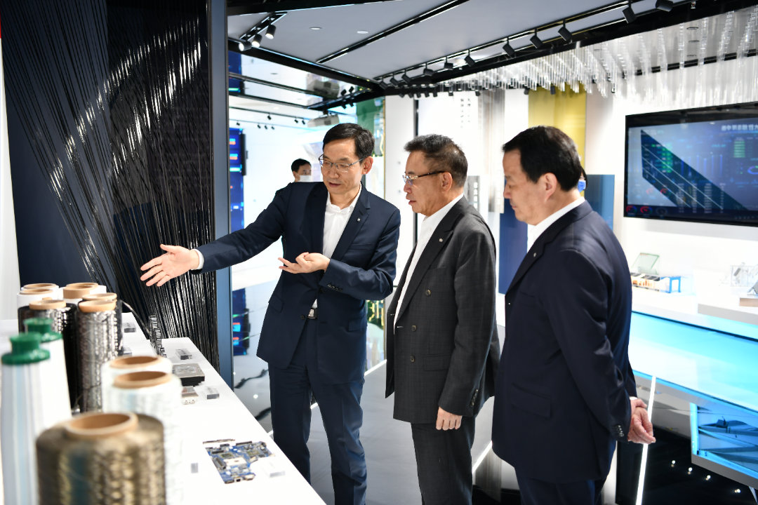 周育先对李东生一行的到访表示欢迎,在展厅重点介绍了集团近些年在高新技术领域所取得的成果,特别是新材料、基础建材领域服务于国家战略及国家重大工程的基本情况,复合材料在载人航天、国产大飞机上的应用,以及集团在多个领域将科研成果实现产业化应用的可喜成绩。彭寿重点介绍了柔性玻璃、发电玻璃的应用情况。