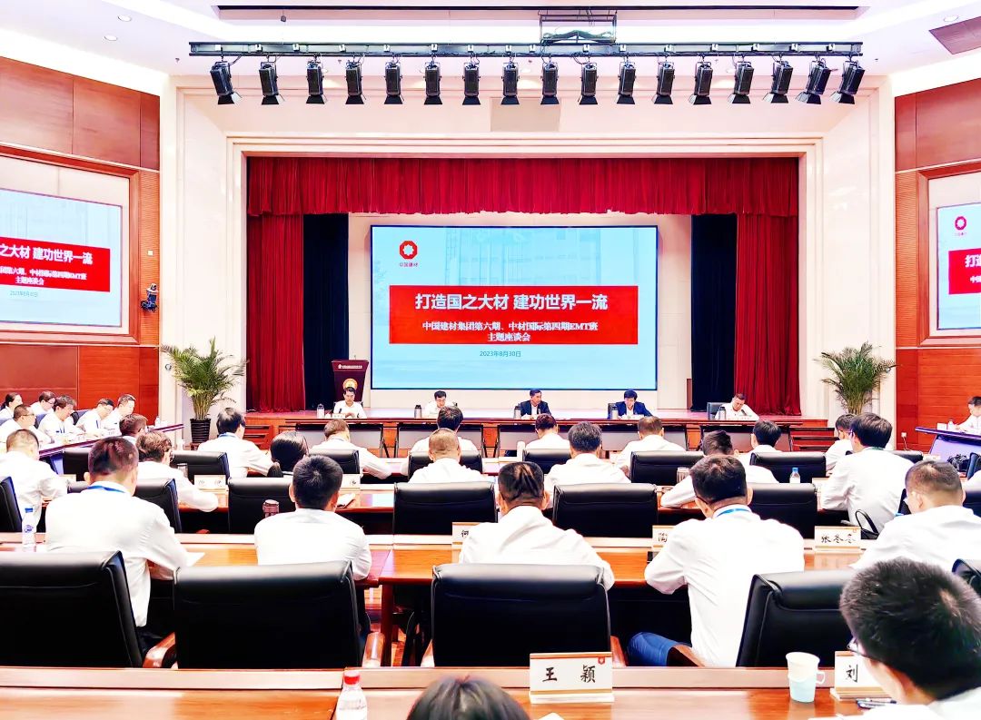 集团总经理助理兼科技管理部主任郅晓,党委组织部(人力资源部)副部长(副总经理)吴振安,中材国际党委书记、董事长印志松,中材国际党委副书记蒋中文,彩票论坛 第六期EMT班全体学员、中材国际第四期EMT班全体学员共计90余人参加座谈。
