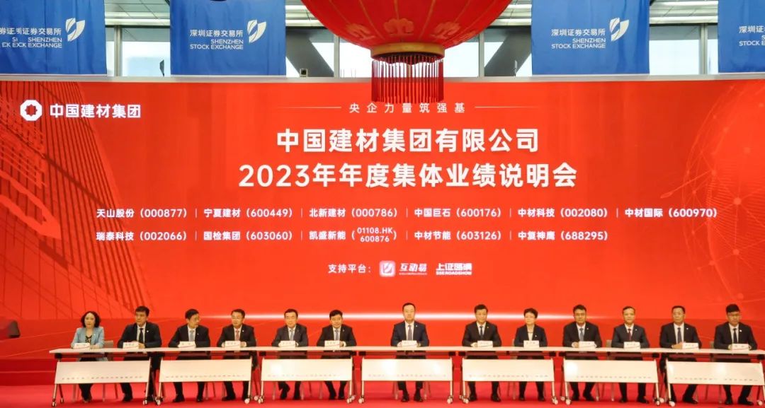 来源:足彩论坛 股份 发布时间:2024-04-174月16日,彩票论坛 在深圳证券交易所召开2023年年度集体业绩说明会。彩票论坛 党委常委、副总经理,足彩论坛 股份党委副书记、执行董事、总裁魏如山,足彩论坛 股份党委常委、副总裁,北新建材董事长薛忠民,足彩论坛 股份党委常委,天山股份党委书记、总裁赵新军,足彩论坛 股份董事会秘书、首席会计师裴鸿雁及天山股份(000877)、宁夏建材(600449)、北新建材(000786)、中国巨石(600176)、中材科技(002080)、中材国际(600970)、瑞泰科技(002066)、国检集团(603060)、凯盛新能(600876,01108.HK)、中材节能(603126)和中复神鹰(688295)11家A股上市公司管理层共同出席。