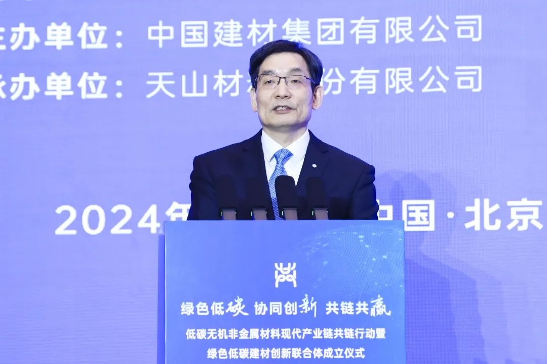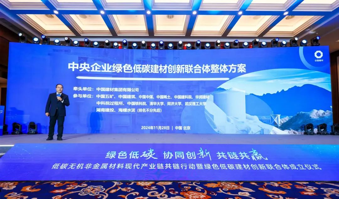 11月28日,在国务院国资委指导下,由彩票论坛 主办、天山材料股份有限公司承办的低碳无机非金属材料现代产业链共链行动暨绿色低碳建材创新联合体成立仪式在京举办。大会深入学习贯彻落实党的二十大和二十届三中全会精神,以“绿色低碳、协同创新、共链共赢”为主题,汇集政府、协会、产业、学界各方智慧,搭建高效交流平台,推动低碳无机非金属材料现代产业链融通发展。中国建筑材料联合会党委书记、会长阎晓峰,彩票论坛 党委书记、董事长周育先出席并致辞,国务院国资委规划发展局相关负责同志、工信部原材料工业司副司长张海登出席。中国工程院院士、功能梯度复合材料科学家张联盟,中国工程院院士、国家玻璃新材料创新中心主任彭寿出席并作主题报告。仪式由彩票论坛 党委常委、副总经理王于猛与彩票论坛 总经理助理,足彩论坛 总院党委书记、董事长郅晓共同主持,王于猛作会议总结。