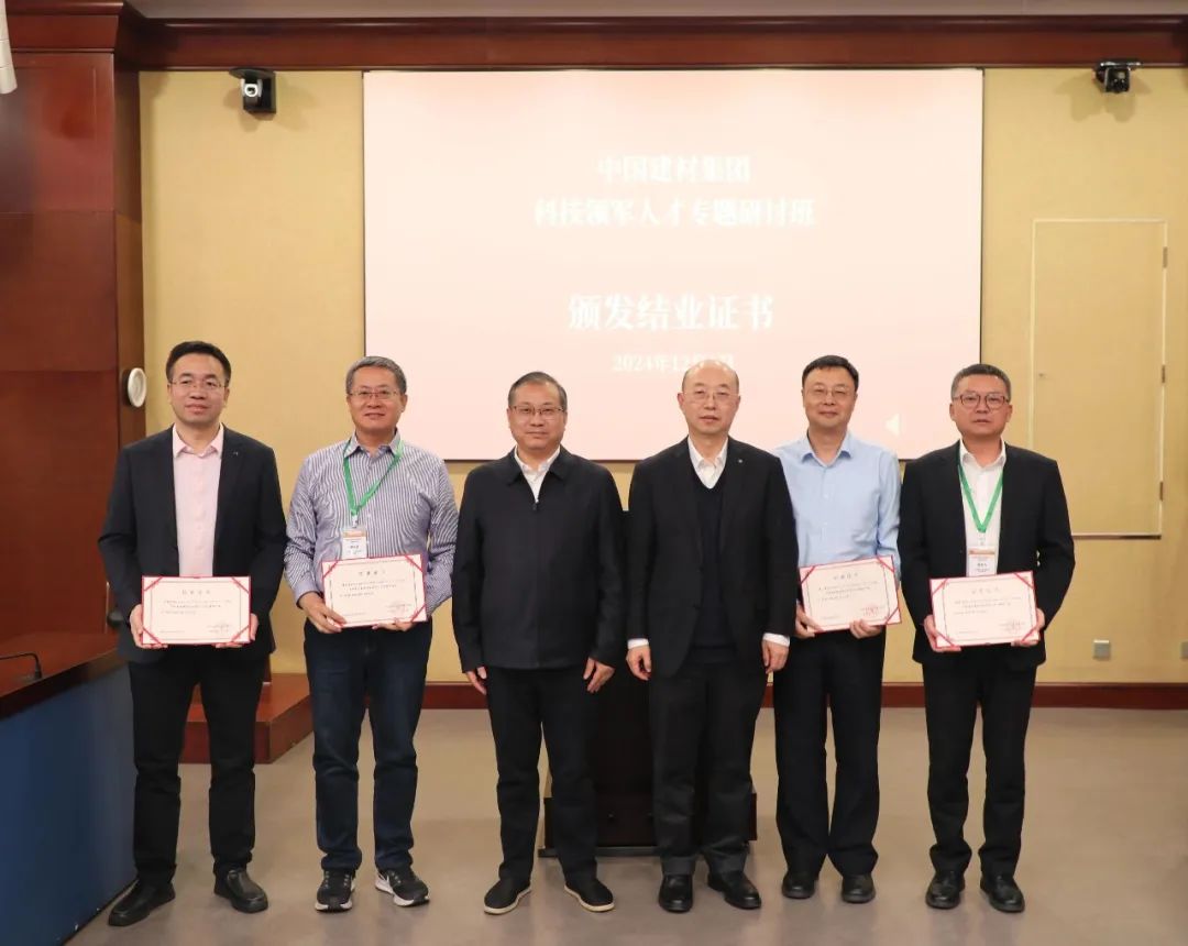 中材科技党委书记、董事长黄再满进行专题授课。集团党委组织部(人力资源部)部长(总经理)苗小玲参加座谈会和结业仪式。集团科技领军人才专题研讨班40名学员参加了座谈会和结业式。