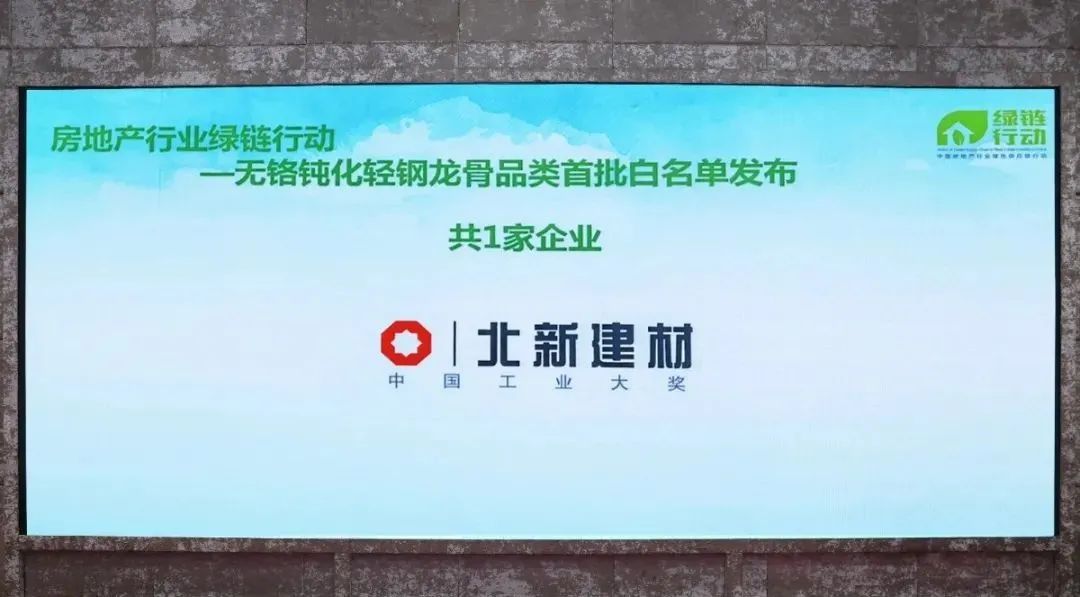 近日,中国房地产行业绿链行动举行四周年成果发布仪式,除已有品类白名单更新外,新发布了无铬钝化轻钢龙骨品类首批白名单,北新建材独家入选。