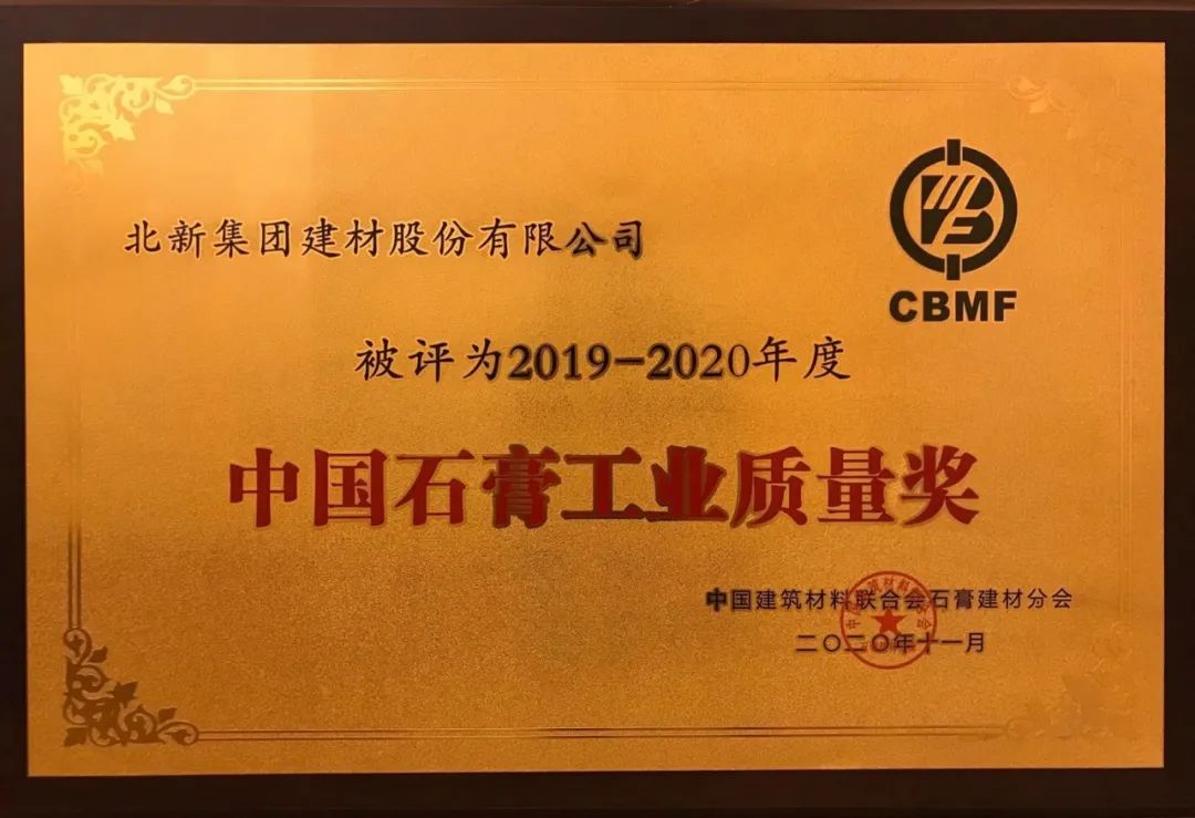 北新建材获“中国石膏工业质量奖”等多项荣誉