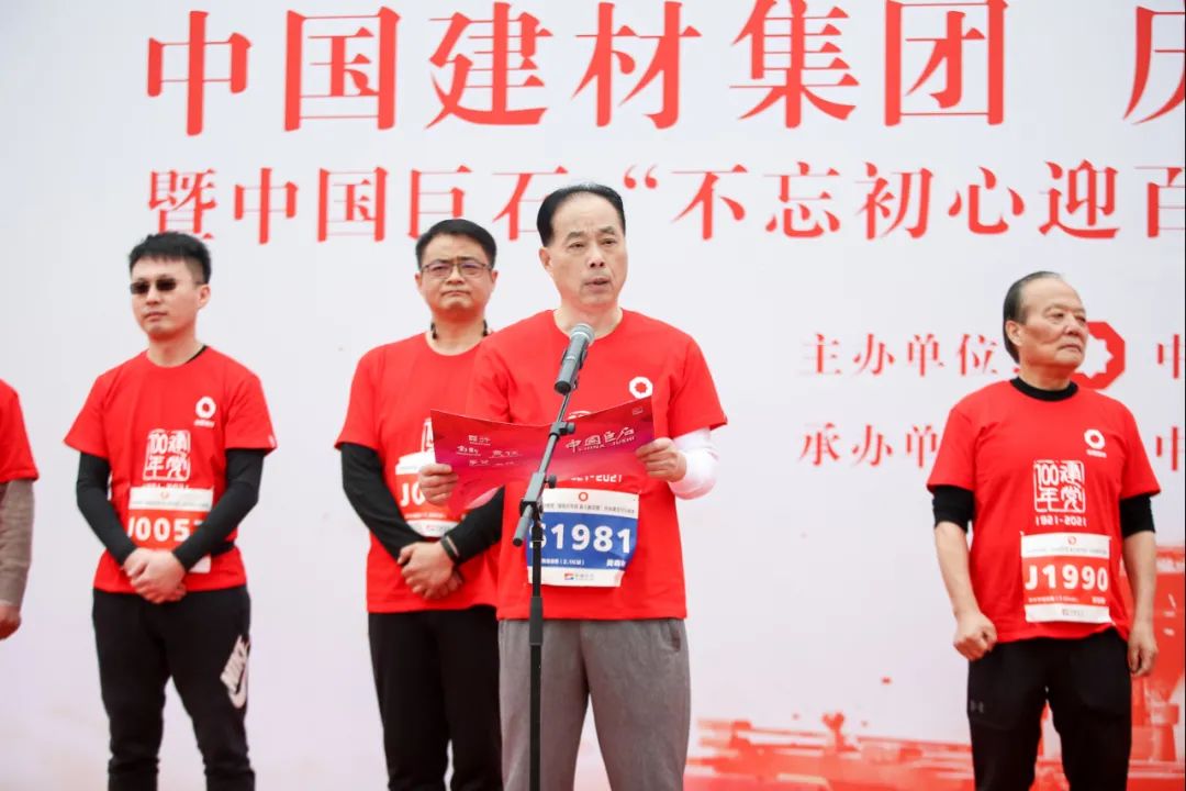 他强调,举办“健跑百年路 奋斗新征程”活动就是引导大家回顾党的历史,从党的非凡历程中深刻感悟马克思主义和习近平新时代中国特色社会主义思想的强大伟力;就是引导大家了解集团发展,不忘初心,牢记习近平总书记对集团的重要指示批示精神,接过历史使命的接力棒,发挥新材料企业优势,以材料创造美好世界,加快建设世界一流建材企业,为实现中华民族伟大复兴的中国梦作出新的贡献!