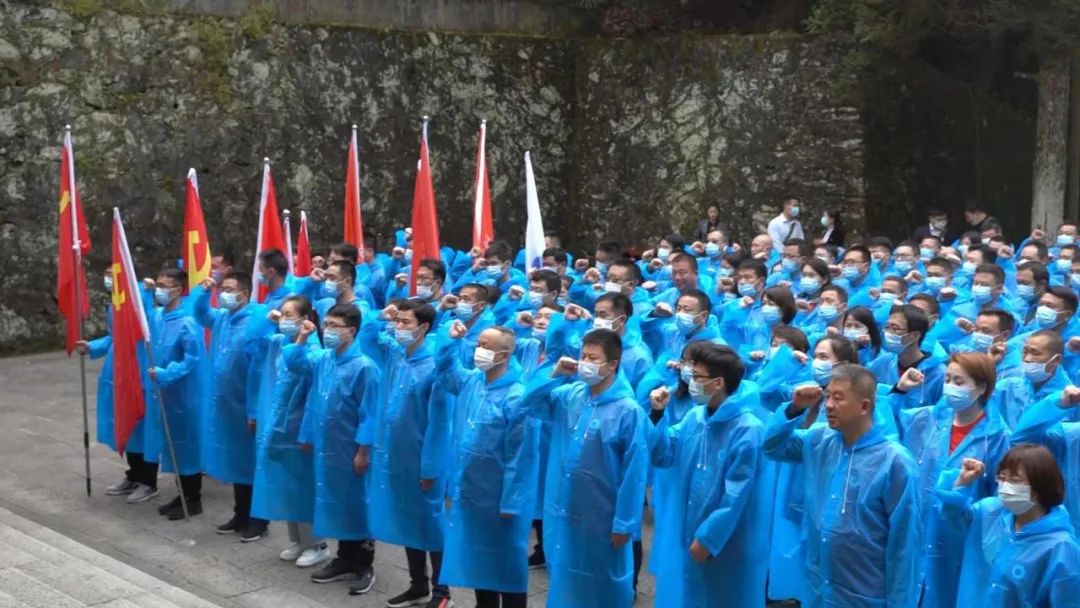 随后全体党员在党旗下,举起右手,重温入党誓词。“我志愿加入中国共产党,拥护党的纲领,遵守党的章程……”响亮的誓词回荡在苍松翠柏之间。