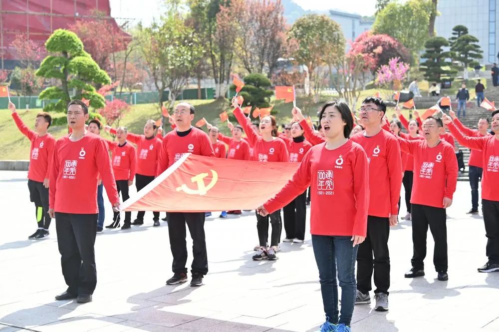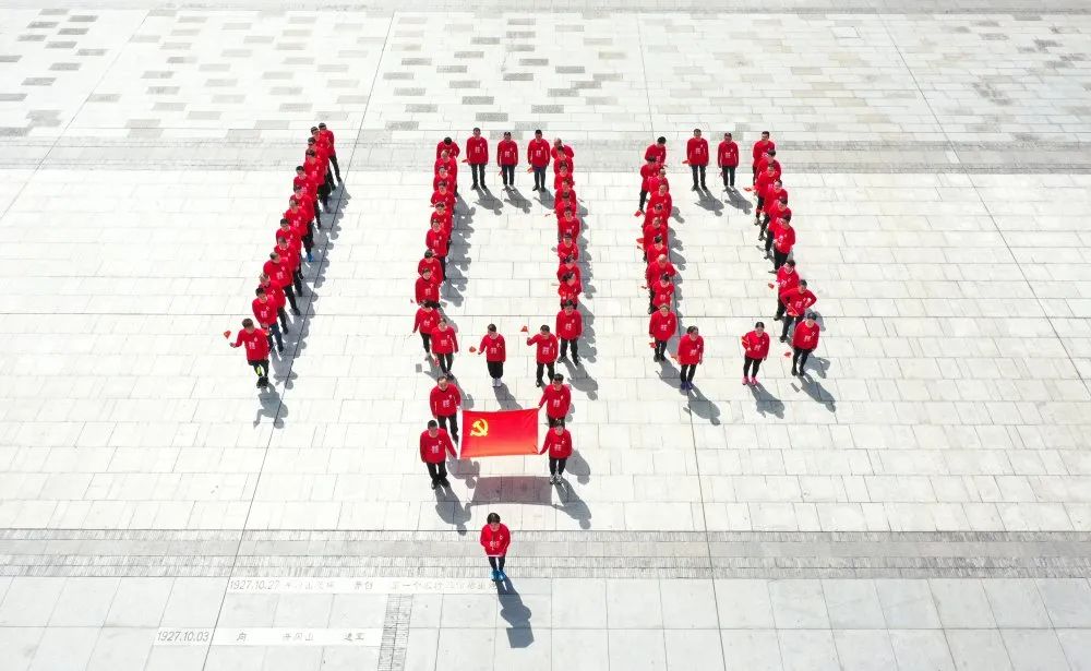 71名同志到达秋收起义广场后,迅速有序排成“100”字型,挥舞着党旗,高喊“爱我祖国、爱我足彩论坛 ”口号,高唱《没有共产党就没有新中国》《歌唱祖国》庆祝中国共产党成立100周年。