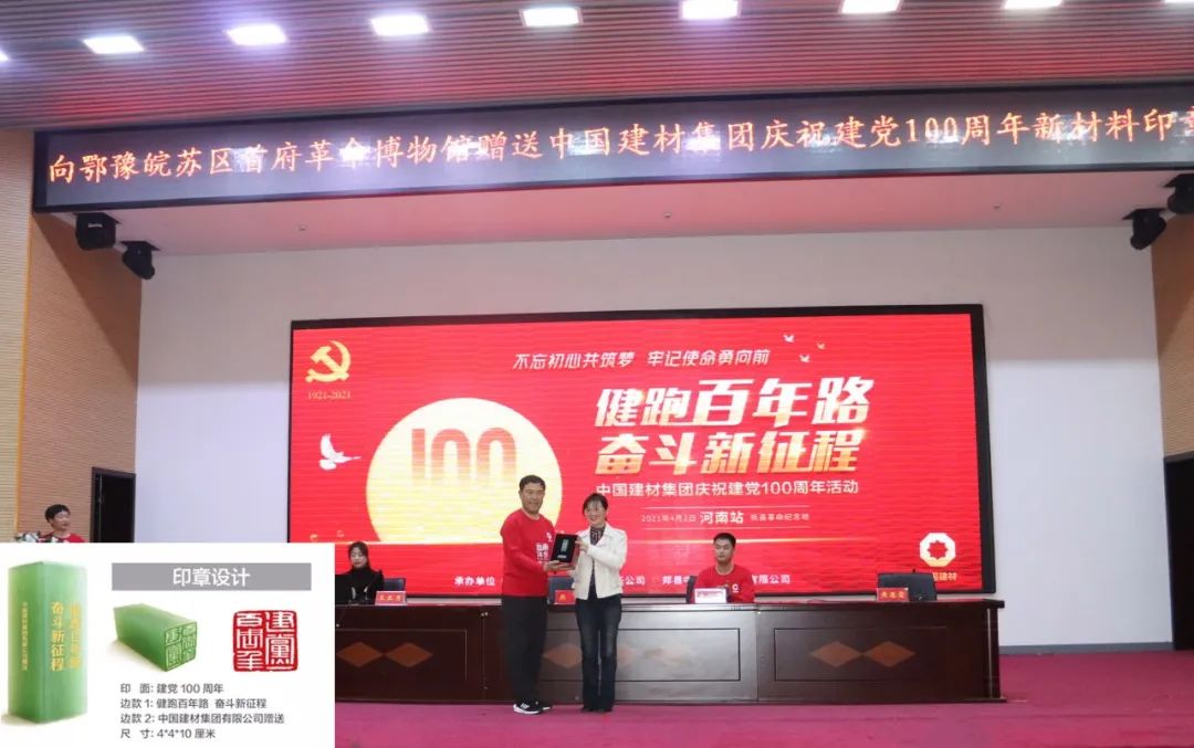 健跑前1天,在鄂豫皖苏区首府博物馆会议大厅举行了授旗仪式和彩票论坛 庆祝建党100周年新材料印章赠送仪式。