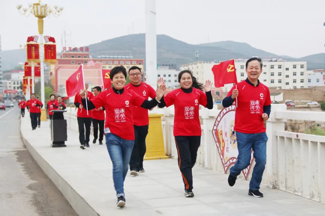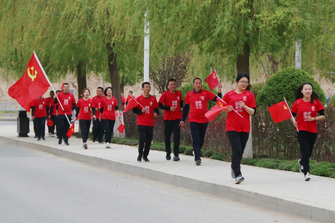 本次健跑活动从红军会宁会师旧址出发,沿会师南路、会师大桥、会师大道来回折返,跑步路线以会师大桥为中轴线形成了一个“中”字,设置了“颂党恩”7.1公里健康跑和“知党情”3.6公里迷你跑两个赛程——7.1公里寓意纪念中国共产党诞生日,3.6公里寓意致敬1936年中国工农红军长征胜利。全体党员、入党积极分子在会宁红军会师旧址蓄势待发,随着一声哨响,大家犹如一支支离弦的箭,立即飞奔出去,沿着预设路线尽情奔跑,享受健跑活动的乐趣,绽放比赛的激情。一路上,大家相互鼓劲、彼此加油、共同向前,展现出拼搏向上、积极进取的精神风貌。