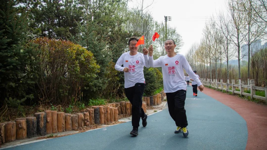 启动仪式上,全体人员按照“100”的字样整齐列队,高举鲜艳的党旗,集体合唱《没有共产党就没有新中国》,用发自内心的嘹亮歌声颂扬党的百年光辉历程和伟大成就。