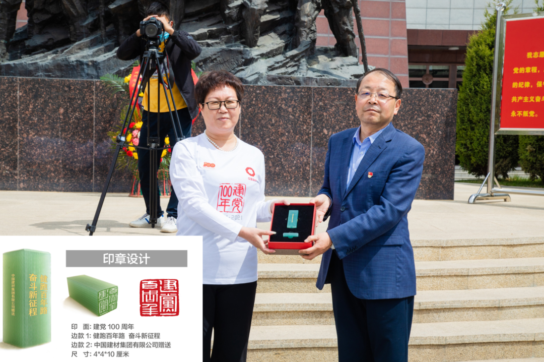参观现场,地勘中心青海总队党委书记张景伟向西路军纪念馆馆长孙孟桥赠送了彩票论坛 庆祝建党100周年的新材料纪念印章。
