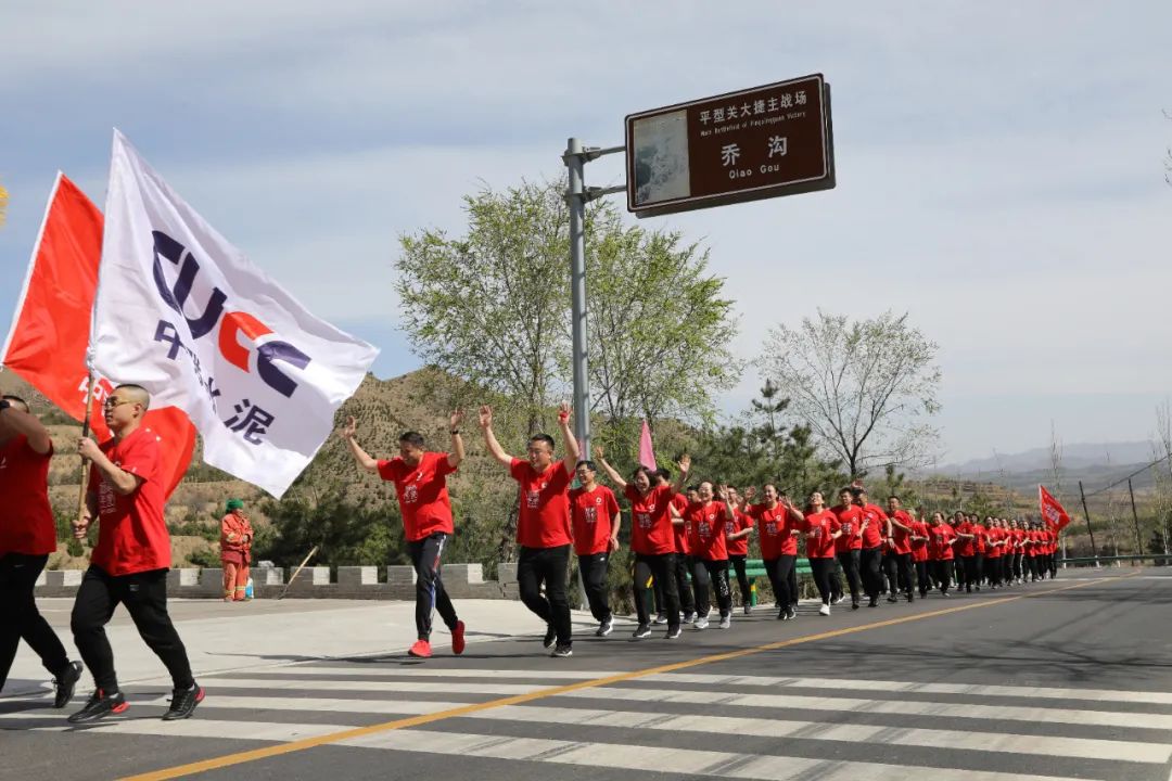 健跑活动从平型关大捷遗址出发,途径平型关大捷主战场乔沟、老爷庙战役遗址等,终点设在平型关大捷纪念馆,路程设置3.7公里,寓意1937年平型关大捷。随着一声起跑令,队伍高举党旗和足彩论坛 、中联水泥旗帜向着终点奋力出发,象征着公司全体员工团结一致、共同向前,奔赴新征程。