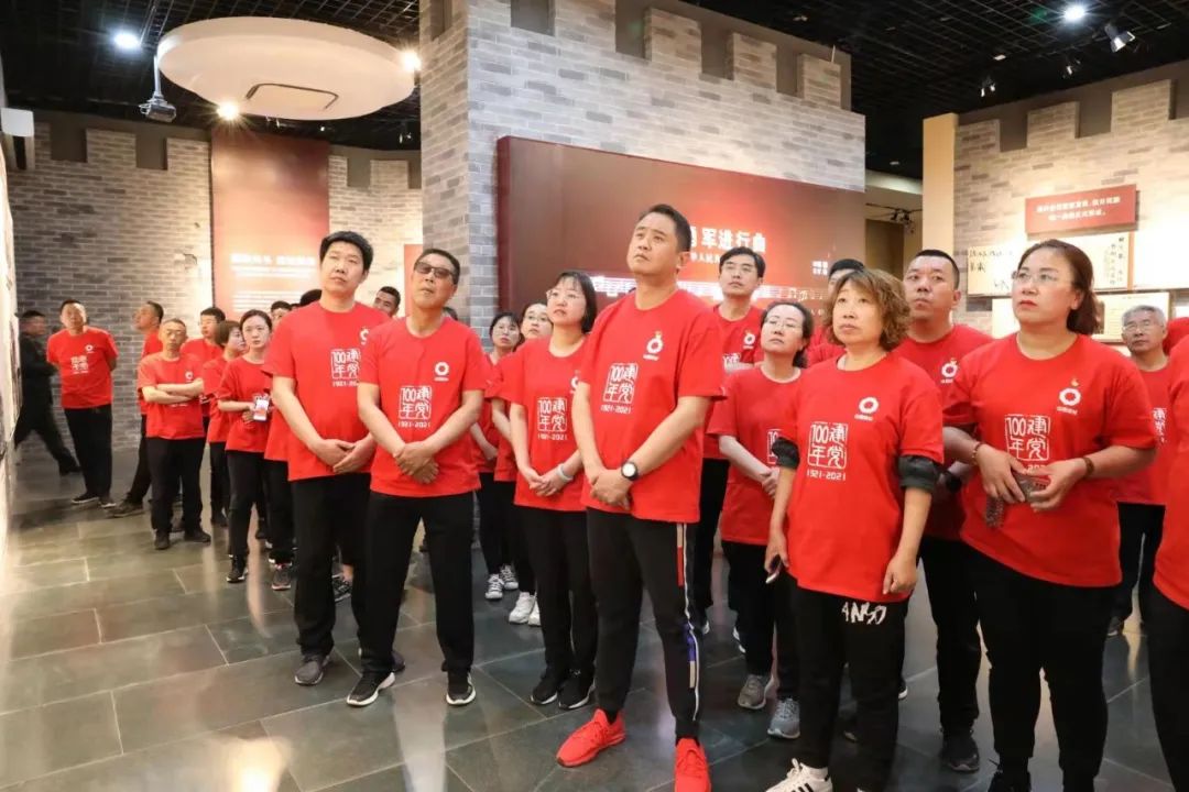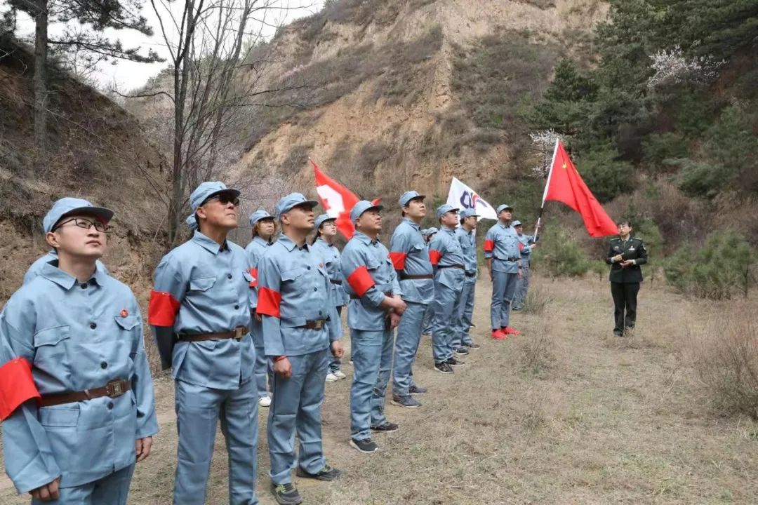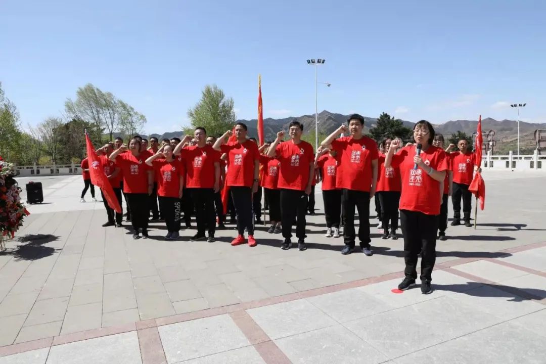在平型关大捷纪念馆前的将帅广场,全体党员面对鲜红的党旗,庄严宣誓,重温入党誓词,回顾初心使命。