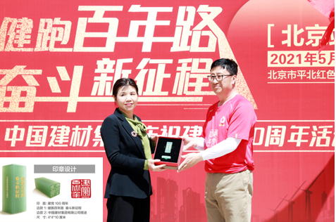 在活动现场举行了彩票论坛 庆祝建党100周年新材料印章赠送仪式,中材科技副总裁、北玻院党委副书记、董事长赵俊山向平北红色第一村纪念馆赠送印章。