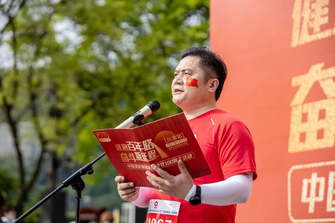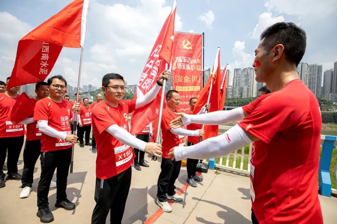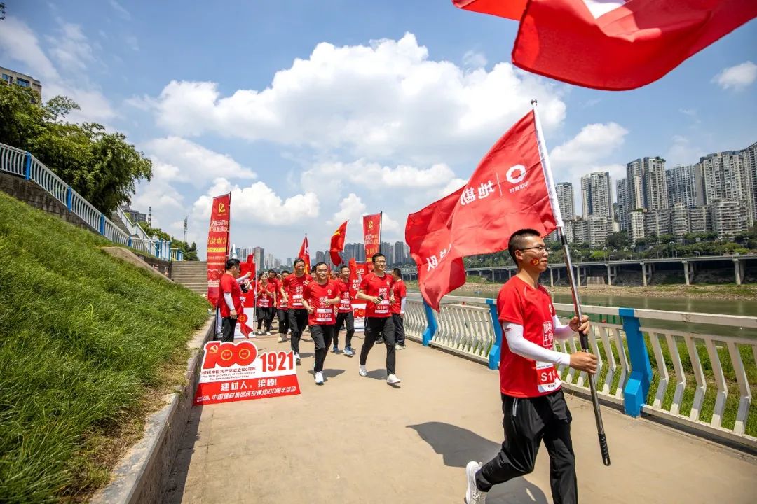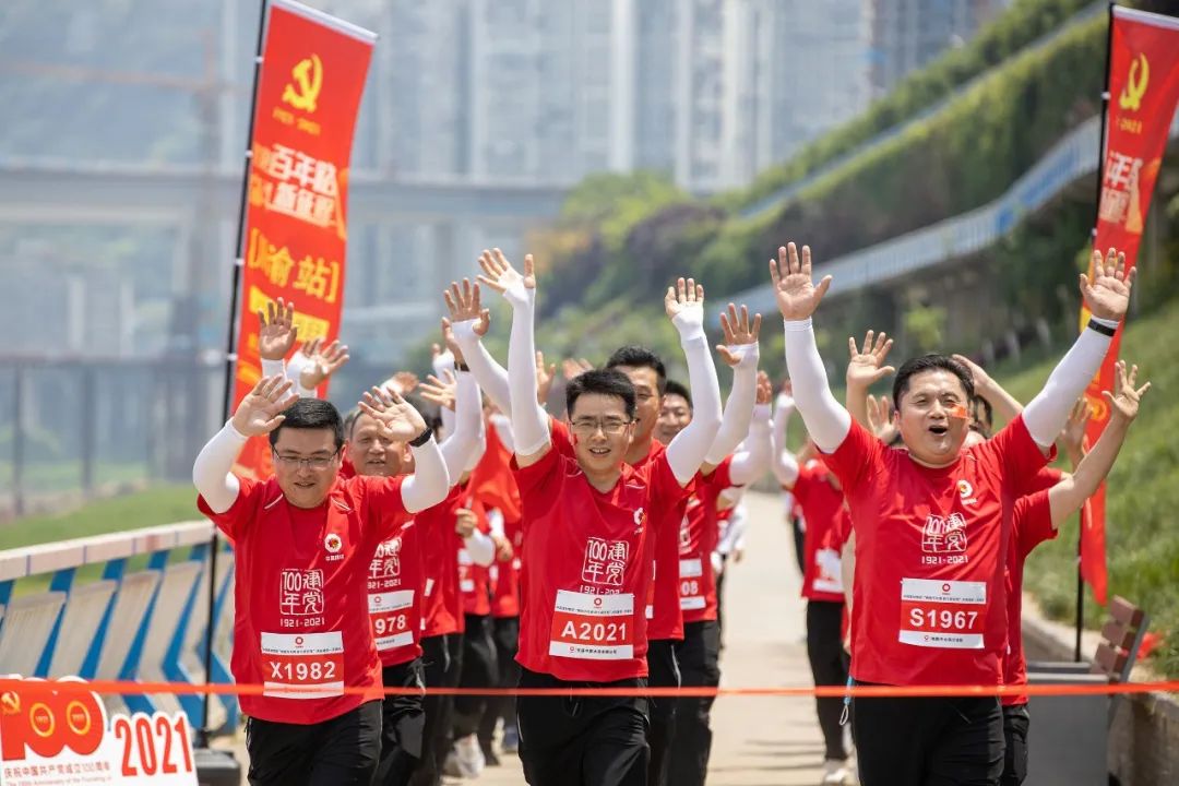 健跑在11点06分正式开始,以1921年、1949年、1978年、2012年和2021年5个年份标识将健跑路线分为4段,四川总队从“1921年”跑向“1949年”,在“1949年”处,将党旗交给安县中联,安县中联从“1949年”奔向“1978年”,重庆秀山接棒,从“1978年”向“2012年”冲去,最后在“2012年”处,三家单位100名选手会师后,共同跨越“2021年”向美好的未来冲刺,寓意一代又一代的足彩论坛 人团结协作,为实现中华民族伟大复兴的中国梦接续奋斗!