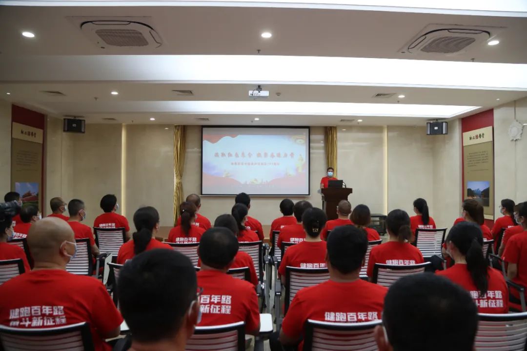 全体党员在广场摆出“100”字样,并齐唱歌曲《没有共产党就没有新中国》,向党的百年华诞献礼。