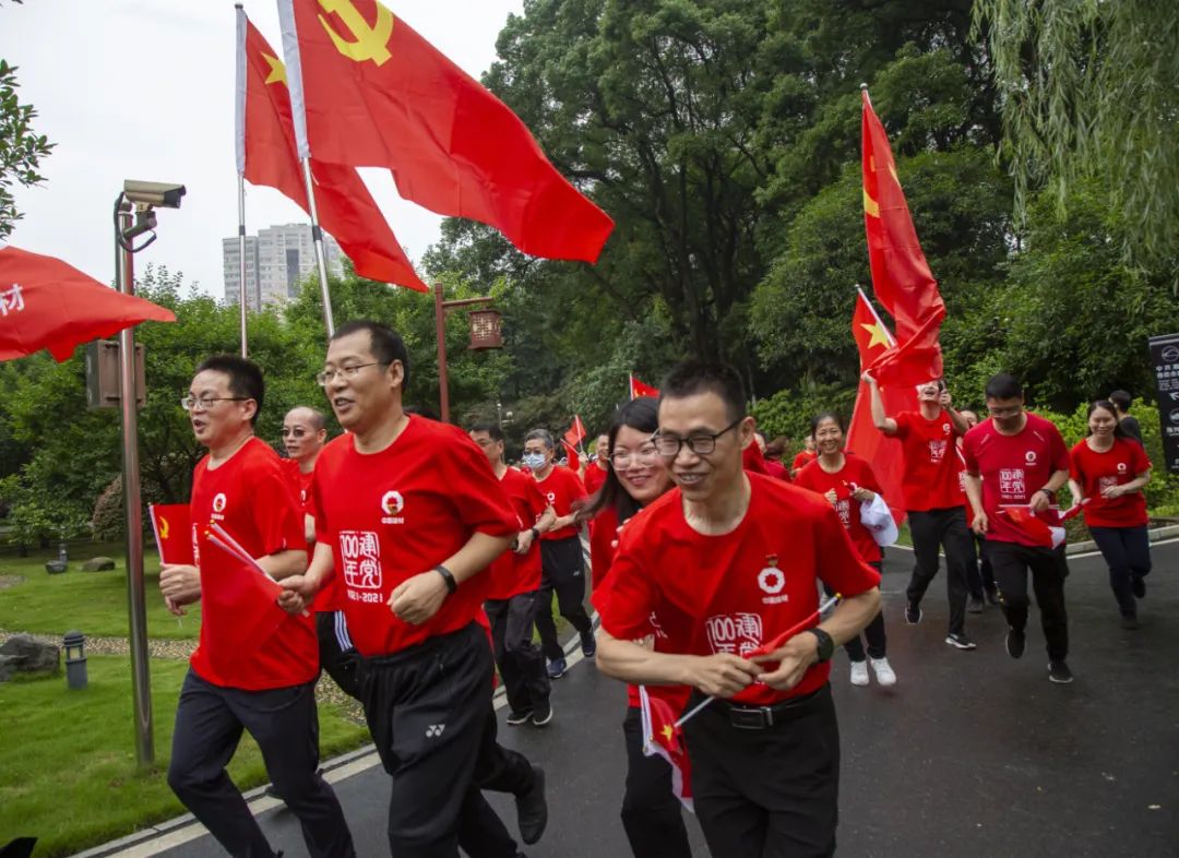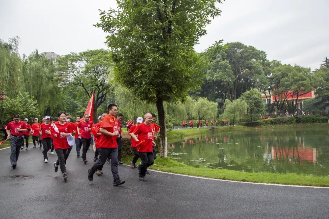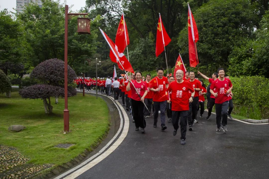 本次健跑路线总长2.1公里,寓意1921年建党和2021年建党100周年。在鲜艳的党旗、国旗引领下,大家沿着革命先辈的足迹坚毅前行。到达长沙历史陈列馆终点后,全体人员合唱《没有共产党就没有新中国》,用歌声表达美好祝福,热烈庆祝中国共产党成立100周年。
