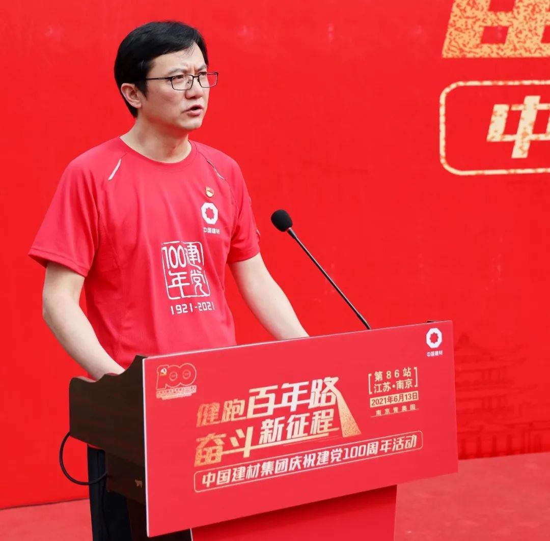 6月13日,彩票论坛 “健跑百年路 奋斗新征程”第86站活动在江苏南京青奥园顺利举行。中材科技副总裁赵谦、党委副书记郭伟,南京玻纤院党委书记、董事长张文进,党委委员、副董事长陈士洁,党委副书记、院长王屹,南京凯盛党委书记、董事长冯建华,党委委员、总经理高爱国,党委副书记、纪委书记陈昌柏等两家公司领导班子成员及党员职工代表230多人参加本次活动。