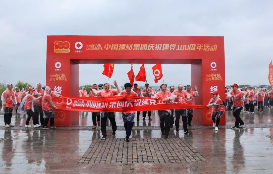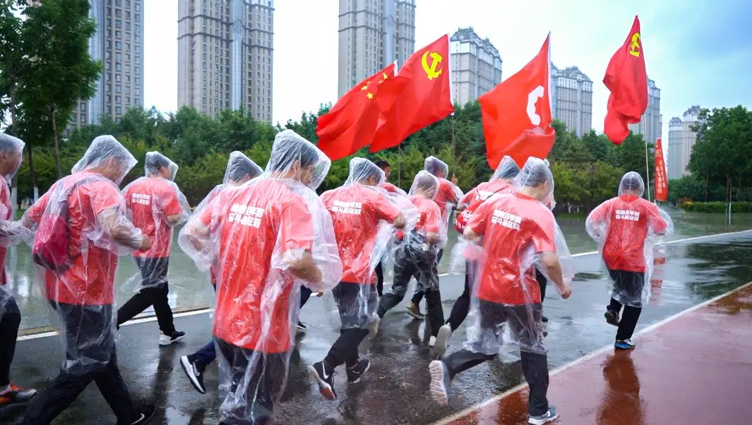 健跑结束后,运动员们摆出集团“健跑百年路 奋斗新征程”活动主题背景图及国旗图案,同时不惧风雨,齐唱《歌唱祖国》,在国旗的引领下,在铿锵嘹亮的歌声中,全体党员干部深刻认识到,我们正处于最好的时代,这是无数革命烈士抛头颅、洒热血换来的,我们要饮水思源,以中国精神为思想指引,为实现中华民族伟大复兴不懈奋斗。