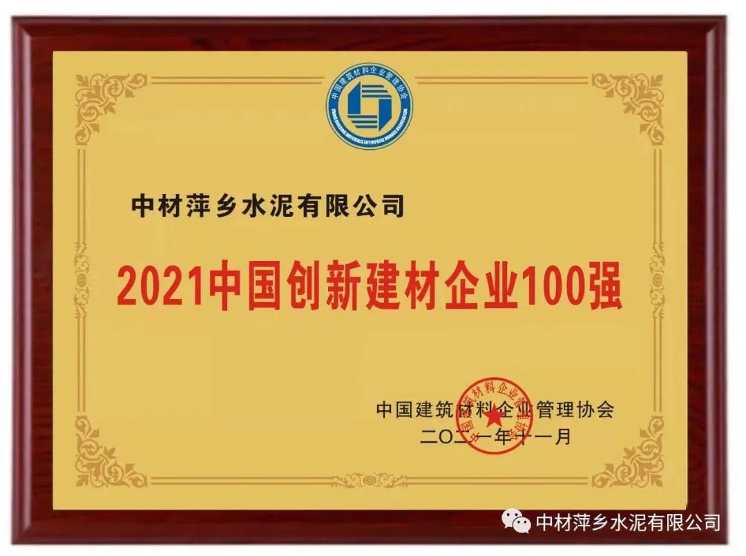 中材萍乡获“2021中国创新建材企业100强”等两项殊荣