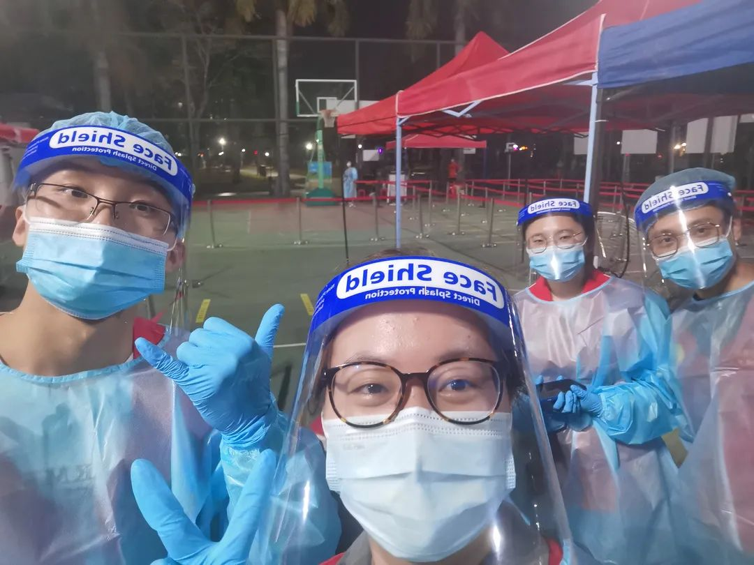公司积极响应龙岗区核酸检测防疫志愿者征集号召,联合党支部、工会、团支部等组织力量,迅速成立疫情防控志愿服务队,协助公司周边多个核酸检测点开展检测引导、信息录入、信息采集等,共计承担4000余人现场引导工作。 邵辉就是其中一员。