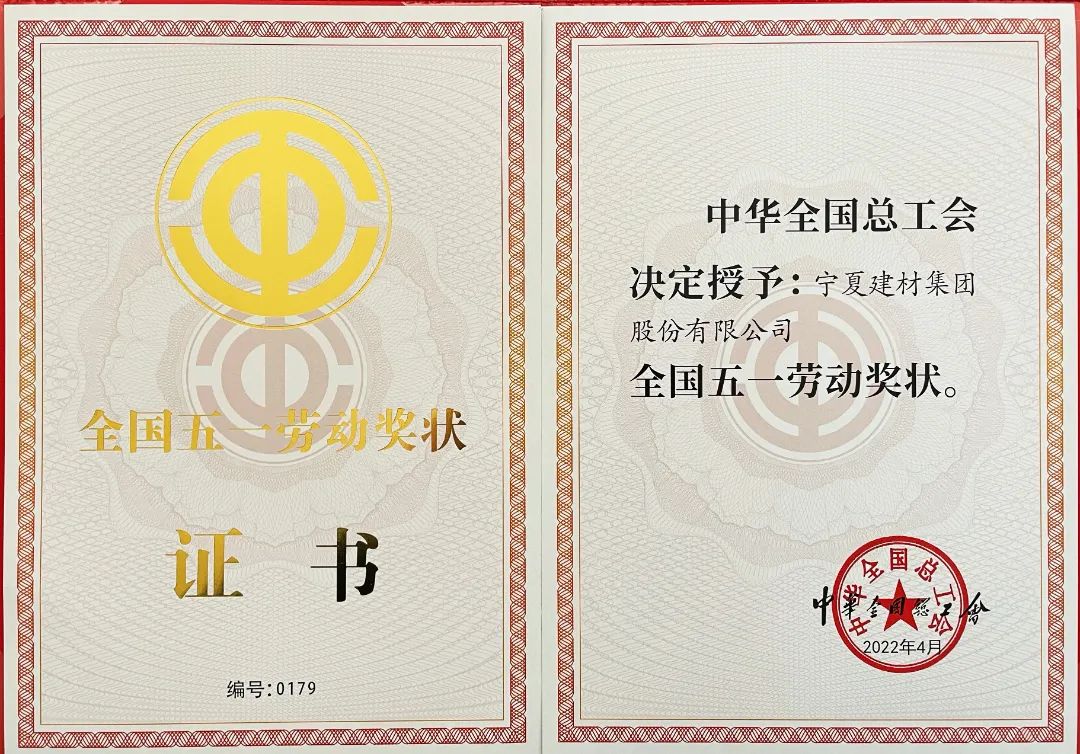 2022年宁夏建材集团股份有限公司荣获“全国五一劳动奖状”荣誉称号