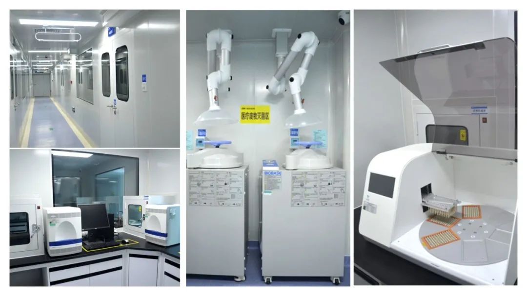 医学检验实验室拥有完整的质量管理体系和先进的检验设施设备。配备全自动核酸提取仪、实时荧光定量PCR、高压灭菌锅、生物安全柜等设备设施,主要开展新型冠状病毒肺炎(CoronaVirus Disease 2019,COVID-19)核酸检测,具备日单管6000人份次的检测能力;拥有专业检测队伍,为开展高质量检测提供了人才和技术支持。
