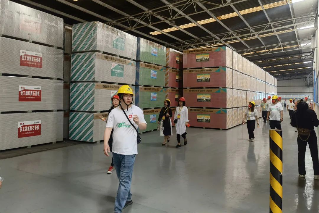 泰山石膏重庆公司特邀重庆市江津区综合保税区、生态环境局、珞璜镇顺江社区居民委员会,重庆市墙体材料工业行业协会及重庆区域公司经销商等参观重庆公司石膏板生产现场,为企业与公众之间建立了沟通交流的平台,展现了泰山石膏良好的生产管理秩序和绿色发展成果。