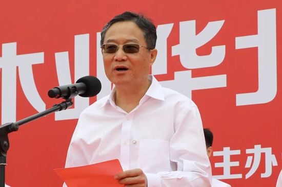 北新集团副总经理于险峰在欢迎辞中指出,在北新厂庆这个值得纪念的日子,我们满怀期待铲起北新国际木业华北运营中心项目的“第一铲土”。