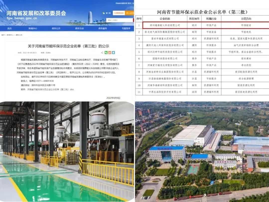 近日,河南省发展和改革委员会公布了《2022年河南省节能环保示范企业名单(第三批)》,郑州瑞泰耐火科技有限公司被认定为“河南省节能环保示范企业”。此次荣获“2022年河南省节能环保示范企业”称号,郑州瑞泰将以此为契机,持续发挥示范企业的价值导向和行业风向标作用,始终保持高度的社会责任感,坚持绿色和可持续的发展理念,坚定不移地走生态优先、绿色低碳的高质量发展道路,强化绿色低碳技术攻关和创新应用,不断推出绿色低碳环保产品,发挥节能环保示范企业作用,努力创造高质量发展新篇章。