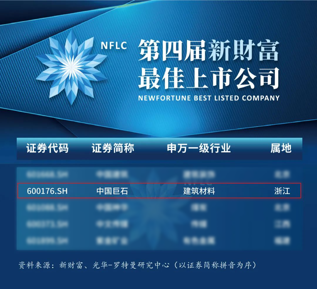 中国巨石荣获第四届新财富“最佳上市公司”