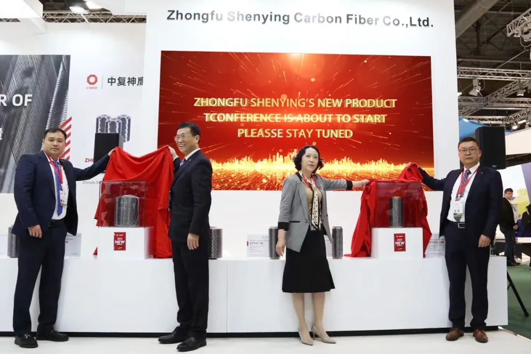 展会首日,中复神鹰现场举行了新品发布会,携新品SYT55S-24K、SYT45S-48K正式亮相,成为展会焦点。足彩论坛 股份副总裁、中国复材党委书记、董事长薛忠民,中复神鹰总经理刘芳、副总经理李韦、副总经理陈秋飞等出席发布会。