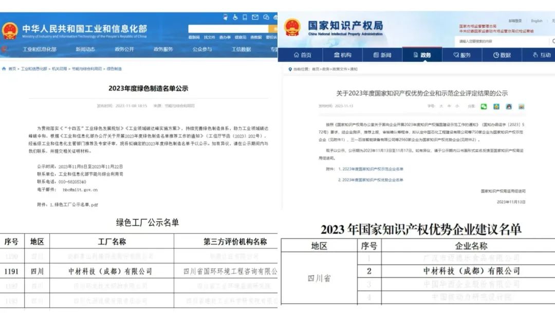 近日,苏州有限成都公司先后入选工业和信息化部发布2023年度绿色制造名单与国家知识产权局发布2023年度国家知识产权优势企业榜单,获得“国家级绿色工厂”和“国家知识产权优势企业”两项国家级荣誉。