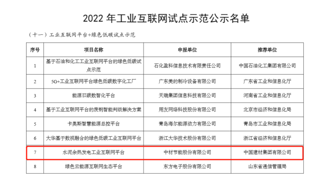 在数字化转型方面,“水泥余热发电工业互联网平台” 成功入选“国家工信部工业互联网试点示范项目”名单,顺利完成两化融合 A 级再认定。成功中标 2022 年天津市智能制造专项-企业上云项目,完成了两条硅酸钙板生产线检测检验智能化升级,积极参与集团信息与数字化建设,向集团输送“金种子”。