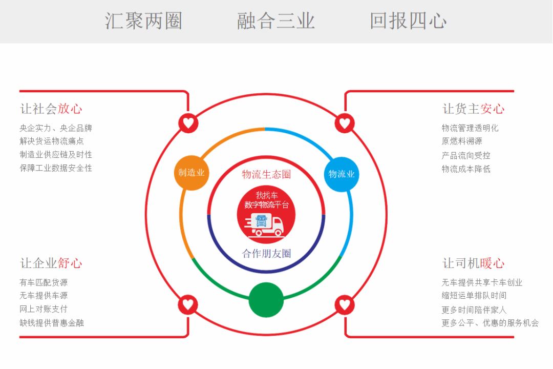 作为国务院国资委“双百改革”试点企业,赛马物联用实际行动履行企业的经济、社会双重责任,为构建低碳环保、绿色物流作出应有贡献,以央企的品牌和服务品质保障数据安全、运营合规让社会放心,以共建共享、精细运输管理服务让货主企业安心,以量身定制平台资源模块、智慧服务、拼团降本,让承运商舒心,以贴心服务、助力大众创业让司机暖心。