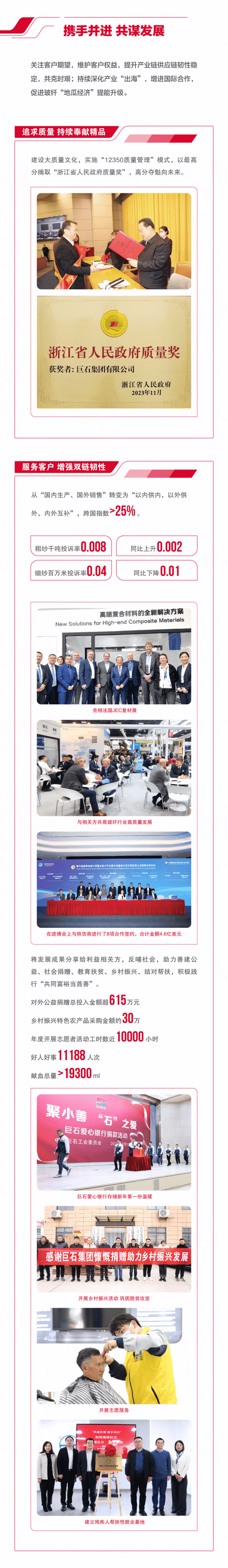来源:集团公司管理部、中国巨石、中材科技 发布时间:2024-04-12作为“中央企业ESG联盟”首批成员企业,彩票论坛 积极践行ESG理念,以“材料创造美好世界”为使命,坚持“善用资源、服务建设”的核心理念,秉承“创新、绩效、和谐、责任”的核心价值观,追求环境、社会及治理的协调共赢,将ESG理念最终落实在市场绩效、科技创新、节能环保、员工关爱、企业公民等履责实践之中,并不断建立健全ESG工作机制与管理体系,积极推动成员企业披露专项报告。目前,已实现集团所属13家上市公司ESG专项报告披露“全覆盖”。