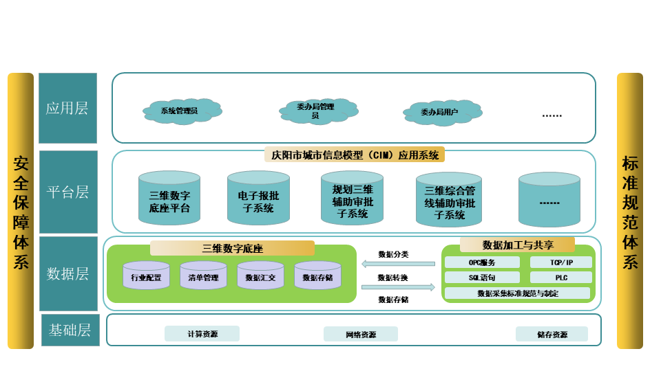 利用云计算、大数据、GIS、IoT等新一代信息技术,通过整合实景三维、基础地理、规划管控、资源调查、工程建设项目等数据,构建全域三维时空数字底座,搭建三维时空数字底座平台,实现三维时空数据的浏览、查询、统计、分析和共享;并在此基础上,搭建了面向规划审批的三维规划辅助审批系统,实现对三维规划设计方案直观的浏览、查询、统计和分析,供审核人员和领导决策提供直观精准的数据支撑和技术支持。系统已经在庆阳、定西等地广泛应用。
