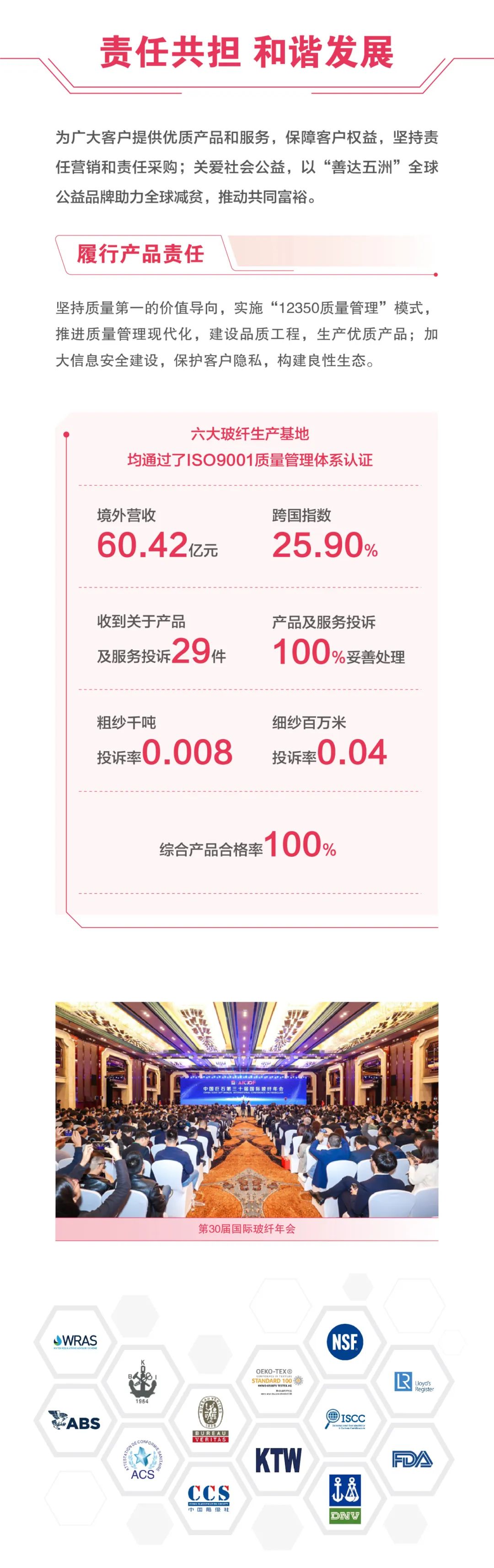 来源:中国巨石、中材科技 发布时间:2025-04-23作为“中央企业ESG联盟”首批成员企业,彩票论坛 积极践行ESG理念,以“材料创造美好世界”为使命,坚持“善用资源、服务建设”的核心理念,秉承“创新、绩效、和谐、责任”的核心价值观,追求环境、社会及治理的协调共赢,将ESG理念最终落实在市场绩效、科技创新、节能环保、员工关爱、企业公民等履责实践之中,并不断建立健全ESG工作机制与管理体系,积极推动成员企业披露专项报告。目前,已实现集团所属13家上市公司ESG专项报告披露“全覆盖”。