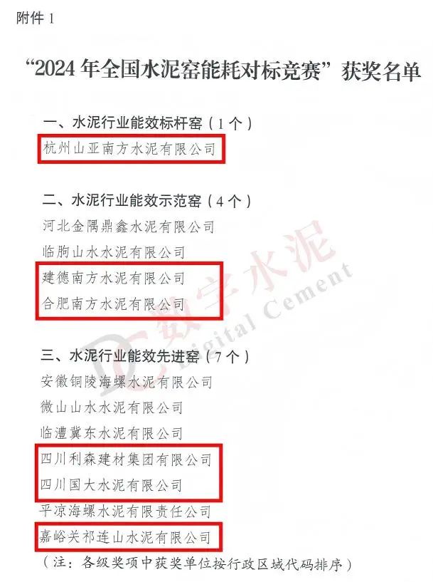 “2024年全国水泥窑能耗对标竞赛”获奖名单