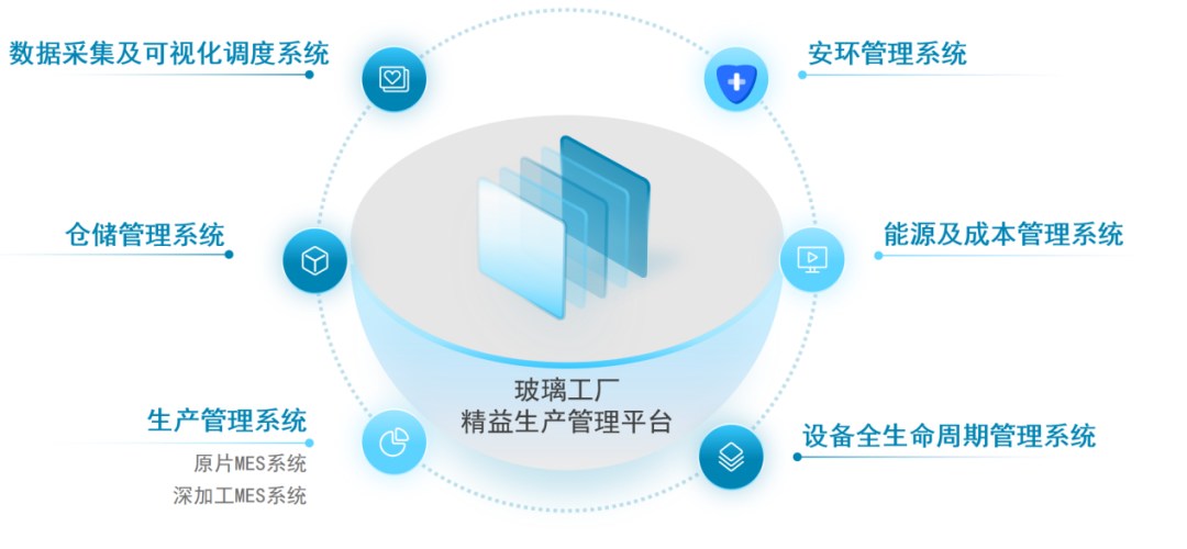 蚌埠凯盛研发的玻璃工厂精益生产管理平台,立足“全流程可视、全要素在线、全数据驱动”的理念,聚焦玻璃生产中“设备重、能源高、过程长、协同难”等痛点,构建了6大系统,打通信息孤岛,实现了从计划、制造、物流到管理的闭环协同。