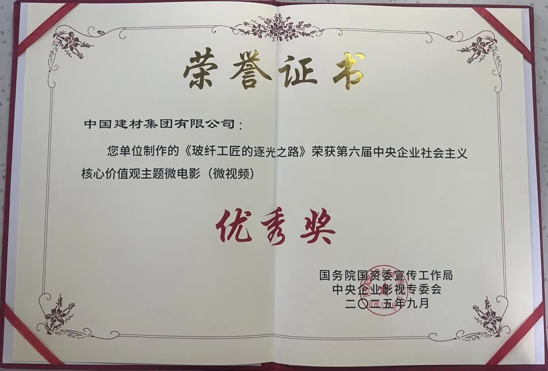 点赞!《玻纤工匠的逐光之路》荣获国资委微电影优秀奖~
