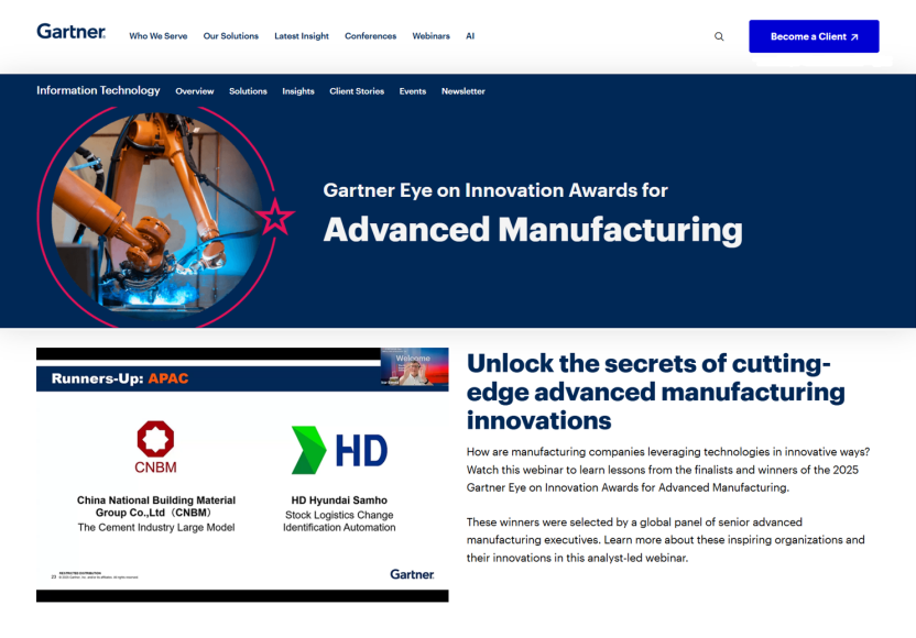 彩票论坛 “水泥产业大模型”案例荣获Gartner“创新之眼”先进制造赛道亚军