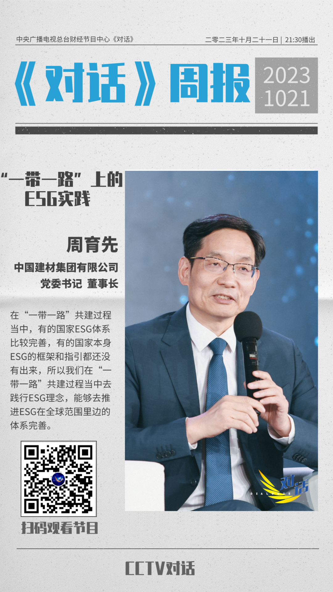 10月21日(周六)21:30央视《对话》#“一带一路”上的ESG实践#,邀请彩票论坛 党委书记、董事长周育先畅谈足彩论坛 的ESG探索和实践。敬请关注。