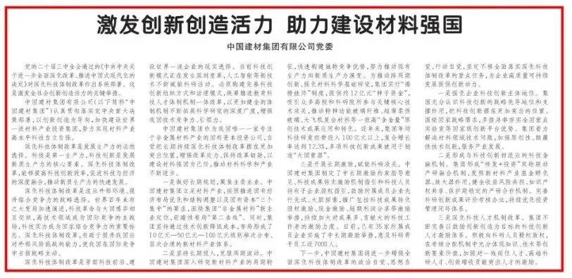 彩票论坛 (以下简称“彩票论坛 ”)认真贯彻落实党中央重大决策部署,以创新创造为导向,加快建设世界一流材料产业投资集团,努力实现材料产业高水平科技自立自强。