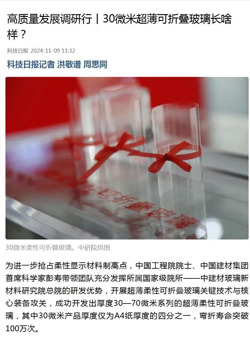 在研发出柔性可折叠玻璃、发电玻璃、药用玻璃等基础上