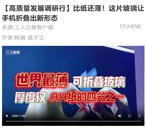 是目前工业化最薄的可折叠玻璃